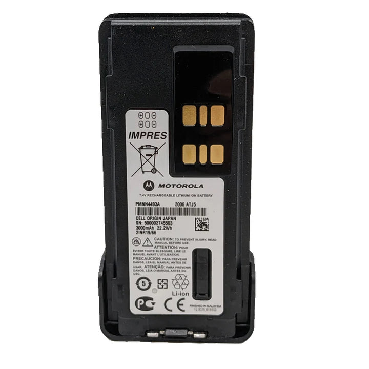 The Motorola PMNN4493A is a high-capacity lithium-ion battery designed to provide long-lasting power and reliable performance for your compatible Motorola two-way radio. With its IP68 waterproof rating and IMPRES technology, this battery is built to withstand tough conditions and keep you connected.